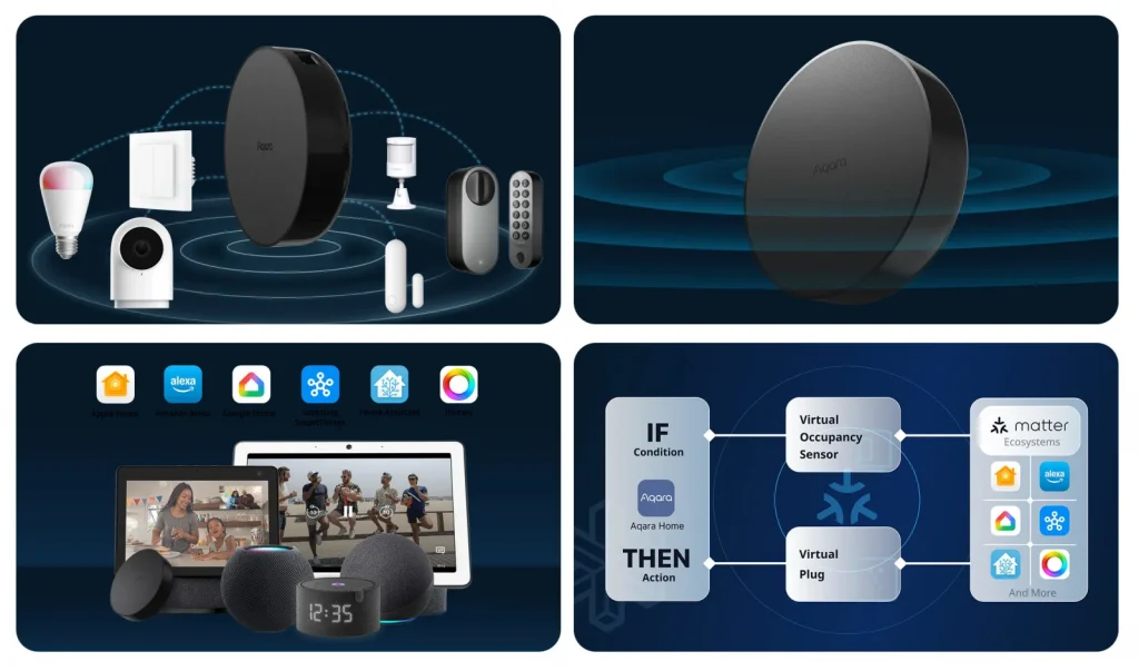 - Unifikacja Ekosystemów: Działa jako mostek Matter, łącząc urządzenia Aqara Zigbee z Apple Home, Google Home, Alexa i SmartThings, co upraszcza zarządzanie domem.