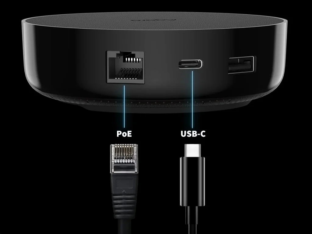 Hub M200 oferuje dwie opcje połączenia – przewodowe i bezprzewodowe. Port PoE (Power over Ethernet) umożliwia zasilanie i przesył danych przez pojedynczy kabel Ethernet, co upraszcza instalację i przyczynia się do większej stabilności połączenia. Dla łączności bezprzewodowej wykorzystuje dwuzakresowe Wi-Fi 6 (2.4 GHz i 5 GHz) z zabezpieczeniem WPA3, co zapewnia szybszą i bardziej stabilną komunikację w ramach Twojej sieci Thread Mesh.